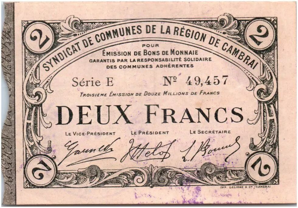 Billet France 2 Francs Cambrai Commune - 1916