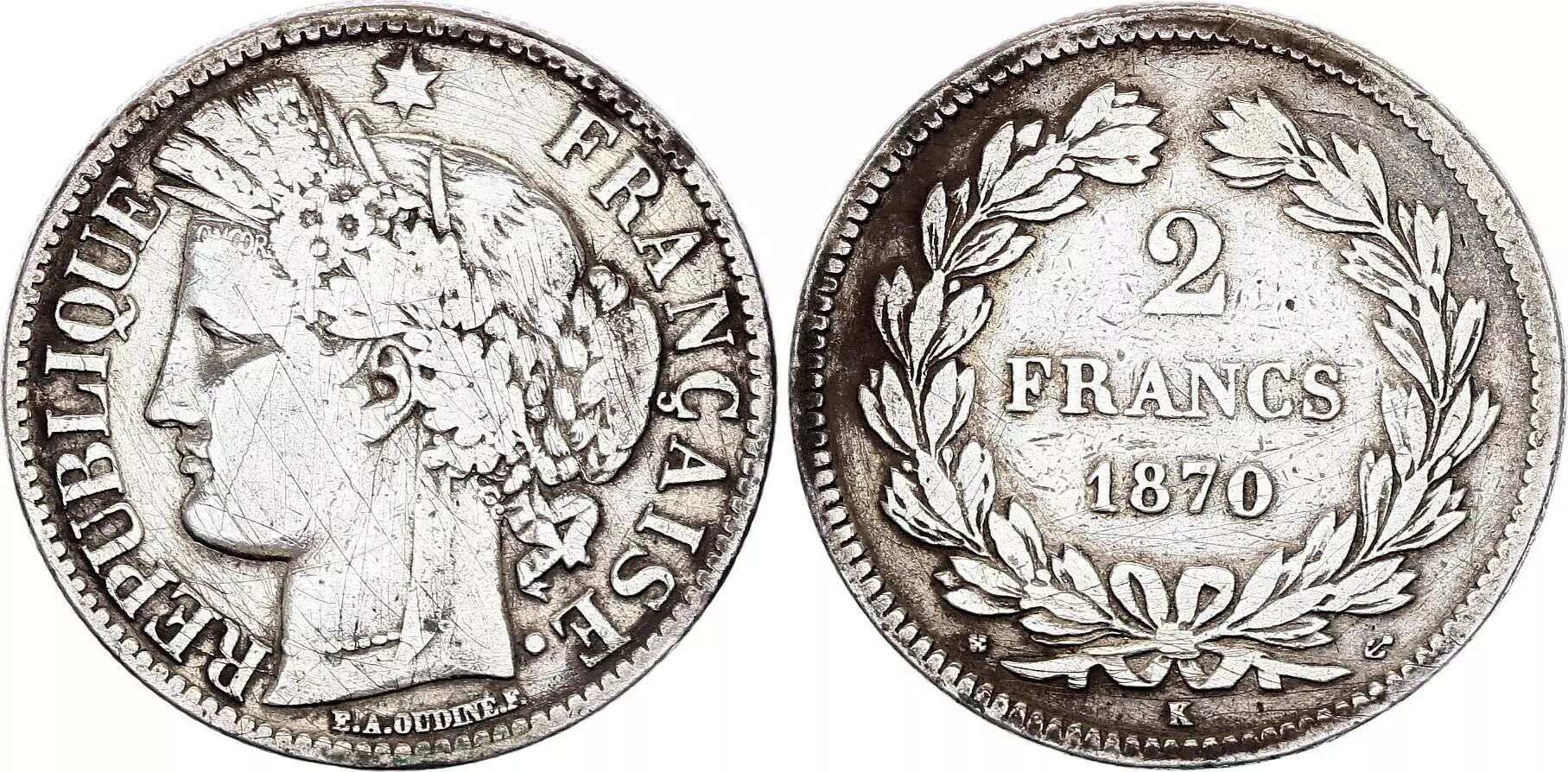 Coin France 2 Francs Ceres - 1870 K Bordeaux - Silver