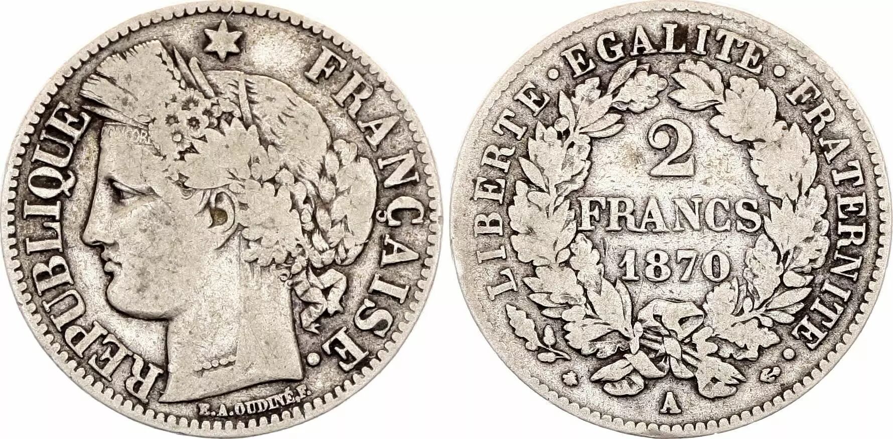 Pièce France 2 Francs Cérès - 1870 Petit A Paris - Argent