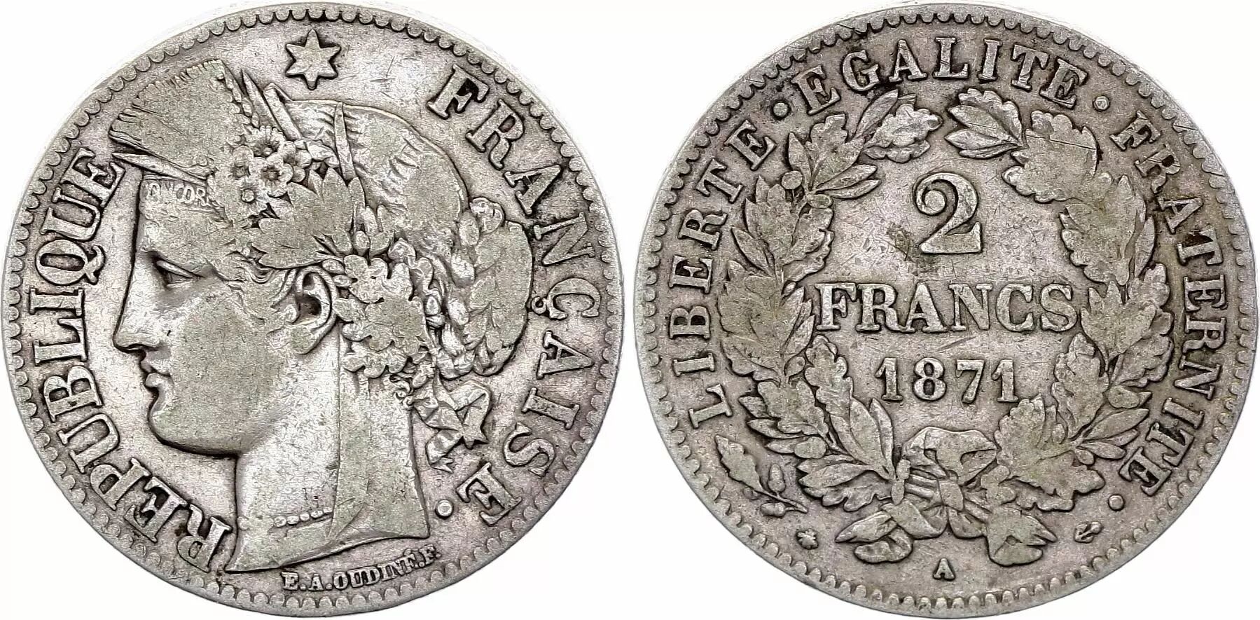 Pièce France 2 Francs Cérès - 1871 Petit A Paris - Argent