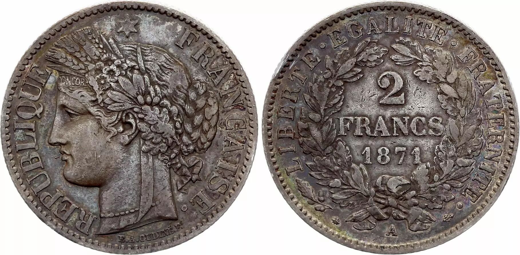 Pièce France 2 Francs Cérès - 1871 Petit A Paris - Argent