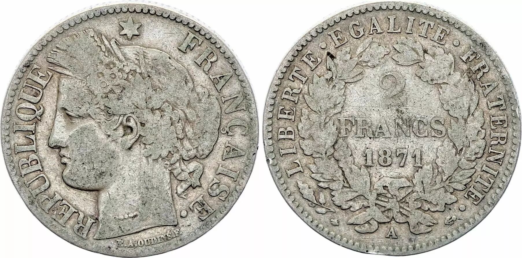 Coin France 2 Francs Ceres - 1871 Small A Paris - Silver