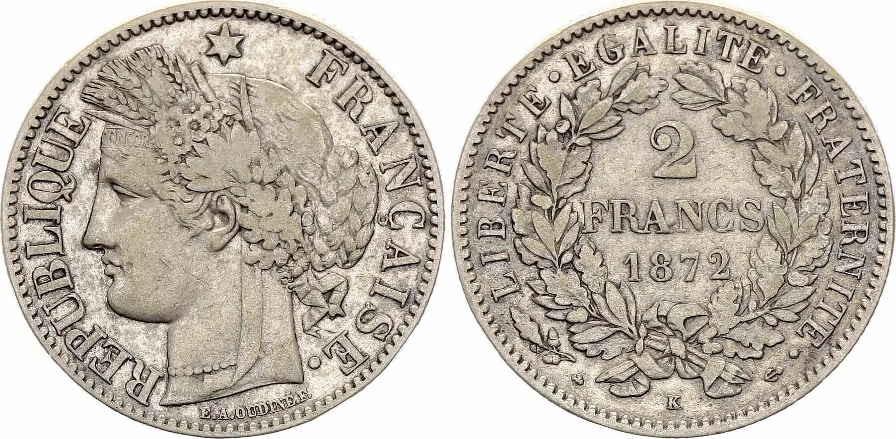 Pièce France 2 Francs Cérès - 1872 K Bordeaux