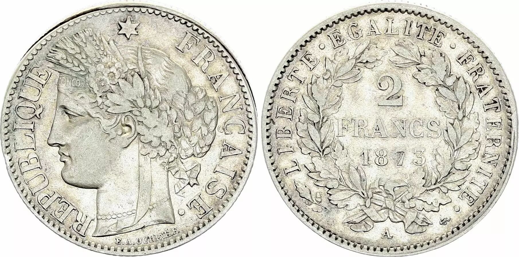 Coin France 2 Francs Ceres - 1873 A Paris - Silver