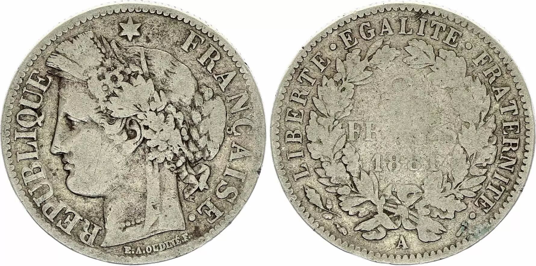 Accueil > Archivage > France 2 Francs Cérès - 1881 A Paris - pTB Argent