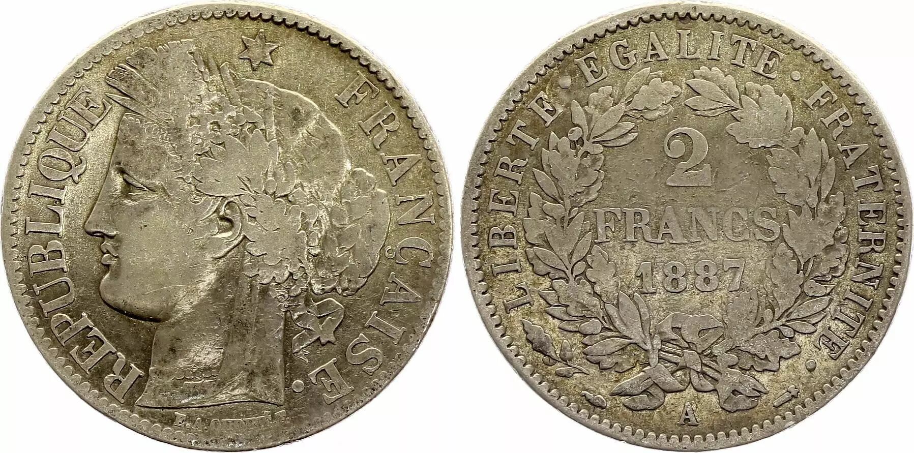 Accueil > Archivage > France 2 Francs Cérès - 1887 A Paris Argent