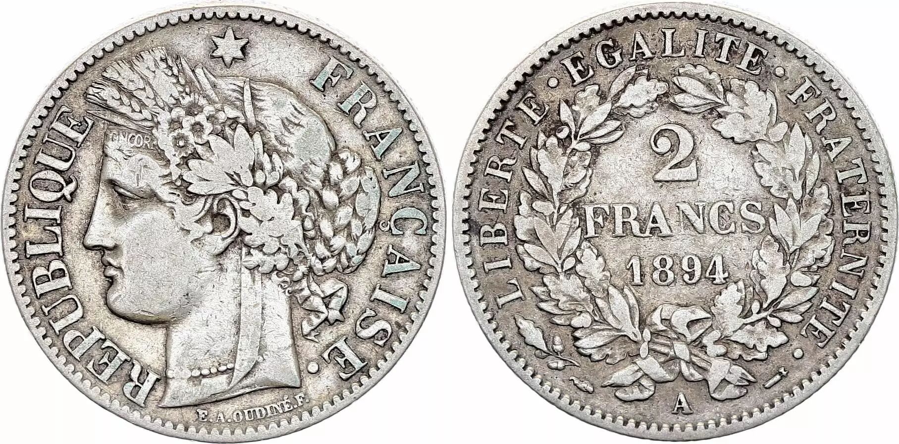 Accueil > Archivage > France 2 Francs Cérès - 1894 A Paris Argent