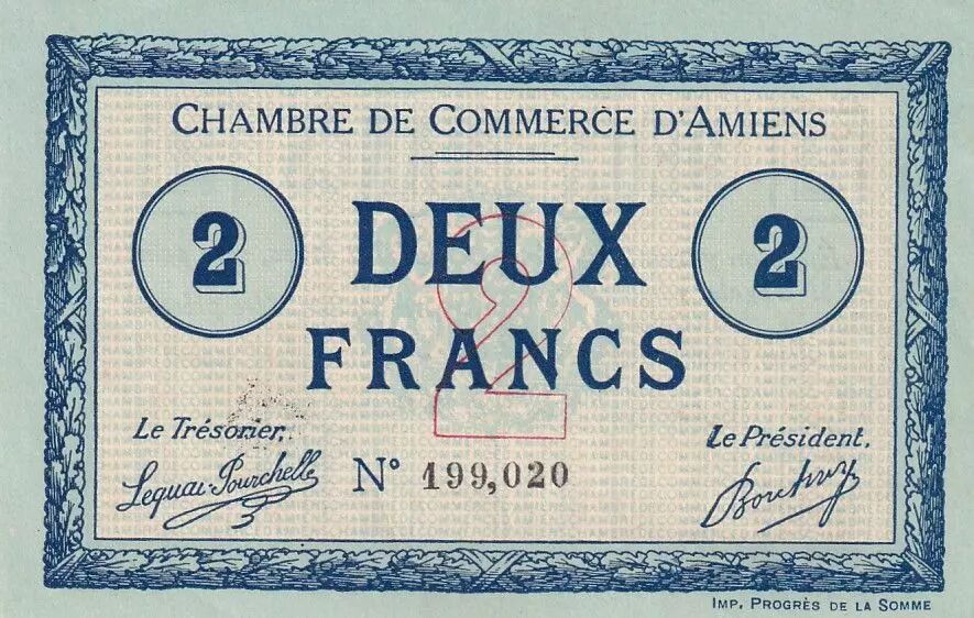 This note does not have a visible watermark. It was printed by Imprimerie du Progrès de la Somme.