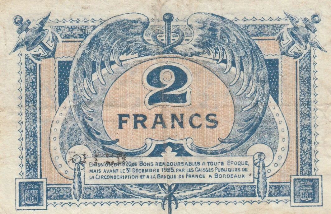 Home > French Banknotes > Necessity Money (1789-1945) > 1914-1925 Chamber of Commerce > France 2 Francs - Chamber of Commerce - Bordeaux - 1920
