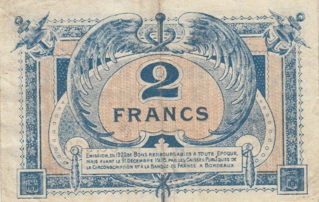 Banknote France 2 Francs - Chamber of Commerce - Bordeaux - 1920