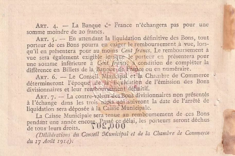 Emergency banknotes issued by the Chambers of Commerce are testimonies of the economic and social history of France during the First World War. They reflect the adaptations put in place to maintain economic activity in times of crisis.
