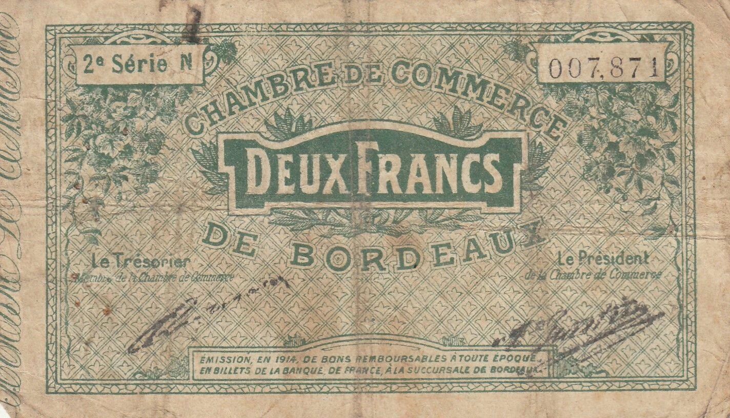 Billet France 2 Francs - Chambre de commerce - Bordeaux - 1914