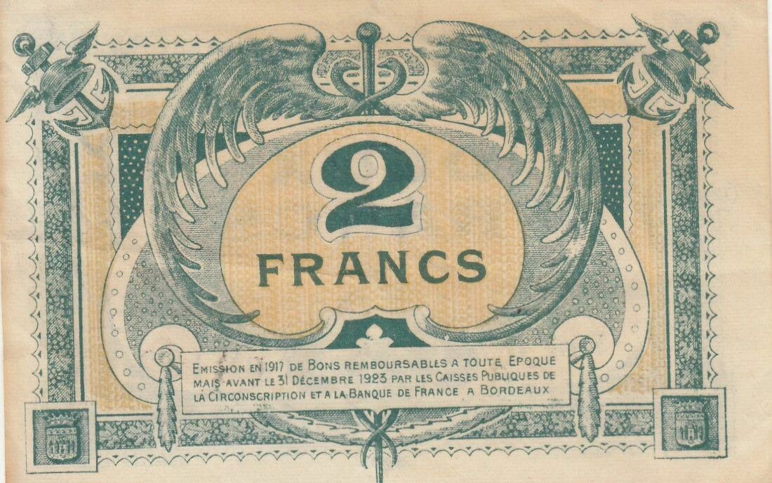 Billet France 2 Francs - Chambre de commerce - Bordeaux - 1917