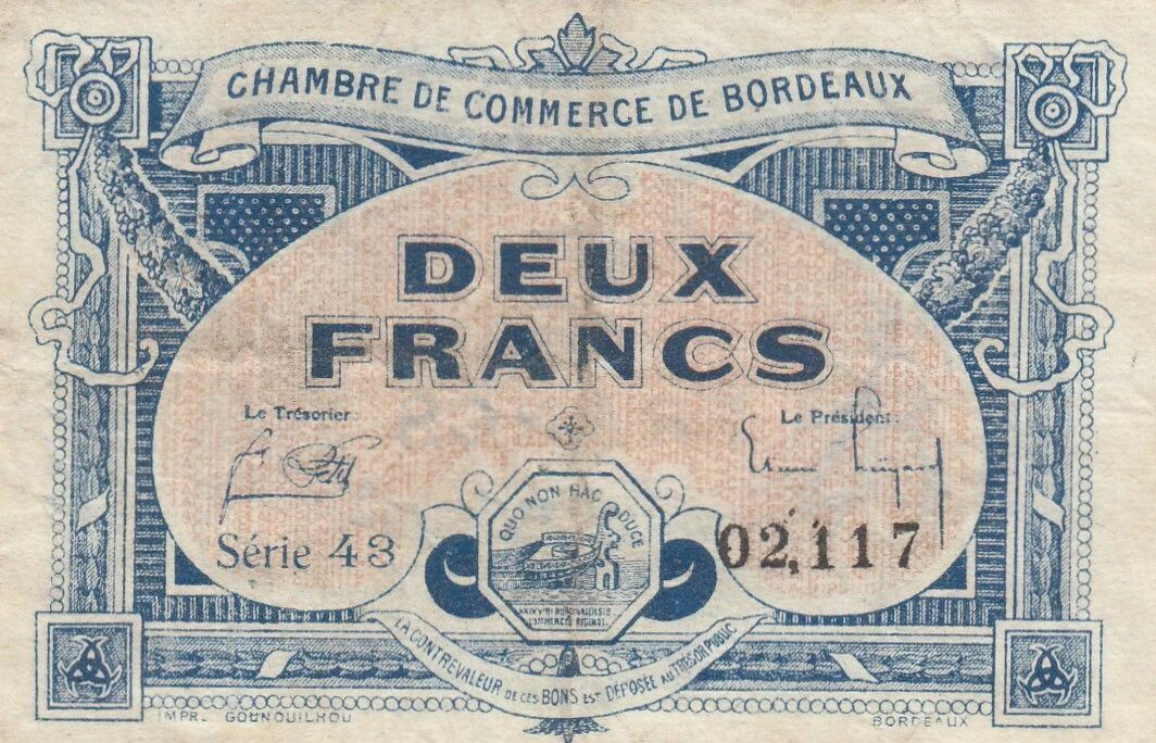 Billet France 2 Francs - Chambre de commerce - Bordeaux - 1920