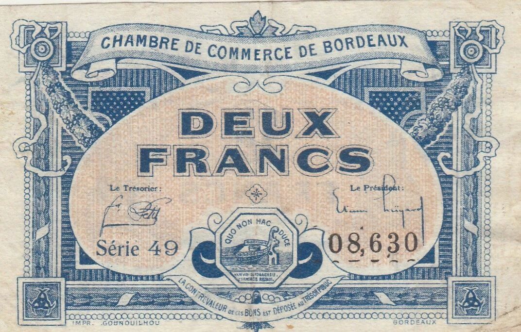 Billet France 2 Francs - Chambre de commerce - Bordeaux - 1920