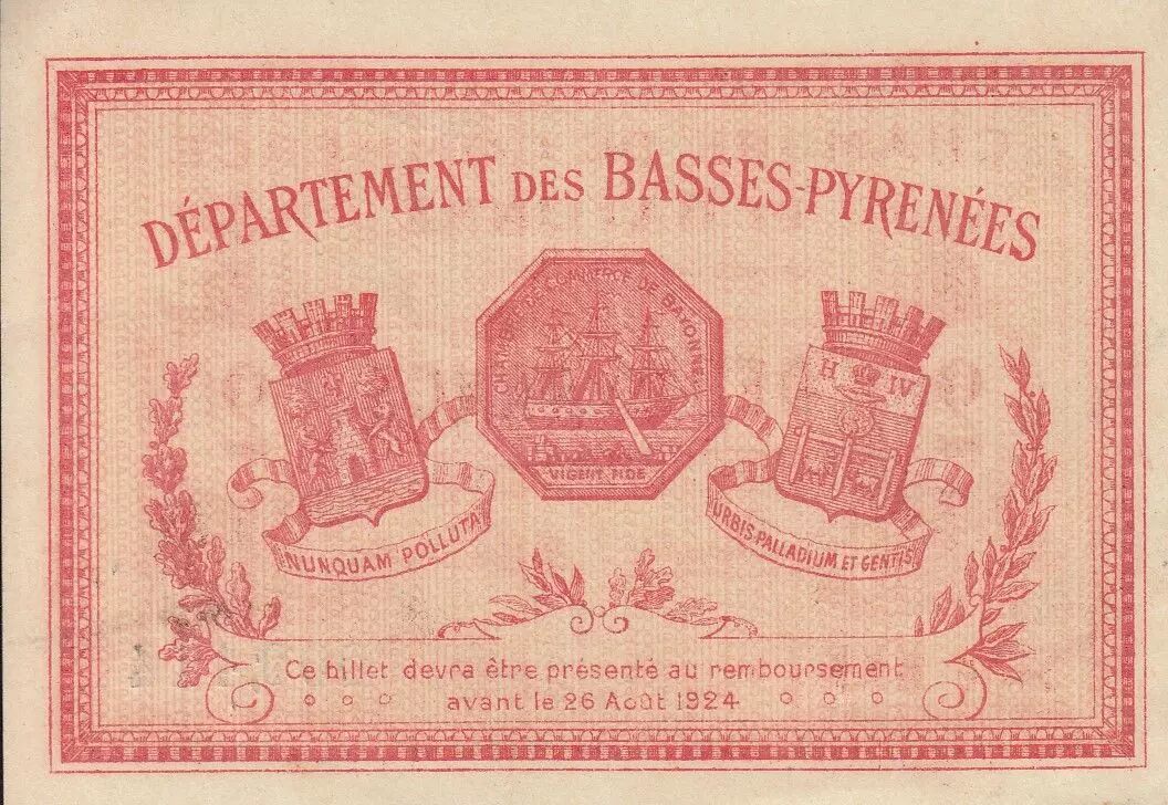 Sur le plan visuel, le billet présente des caractéristiques graphiques propres à l'époque de son émission. Les couleurs utilisées, les motifs ornementaux et la typographie reflètent les tendances esthétiques du début du XXe siècle. Il est probable que le billet comporte des signatures de responsables de la Chambre de Commerce de Bayonne, authentifiant ainsi son émission et sa valeur.