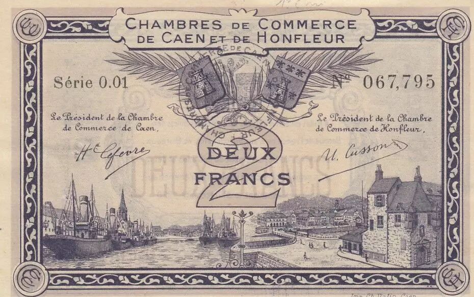 Accueil > Billets Français > Billets de Nécessités (1789-1945) > 1914-1925 Chambre de Commerce > France 2 Francs - Chambre de Commerce de Caen et Honfleur - 1915 - SPL