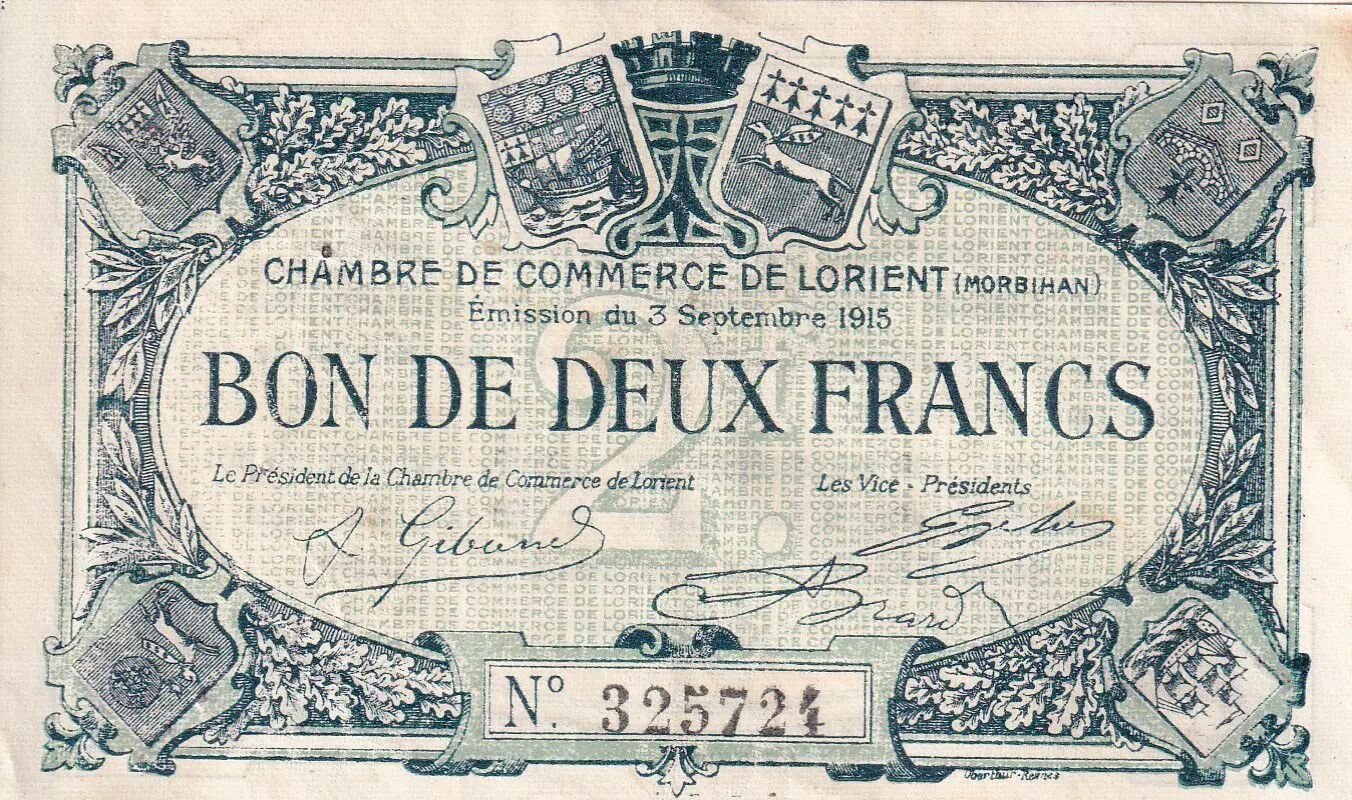 Accueil > Archivage > France 2 Francs - Chambre de commerce de Lorient - 1915 - P.75-16