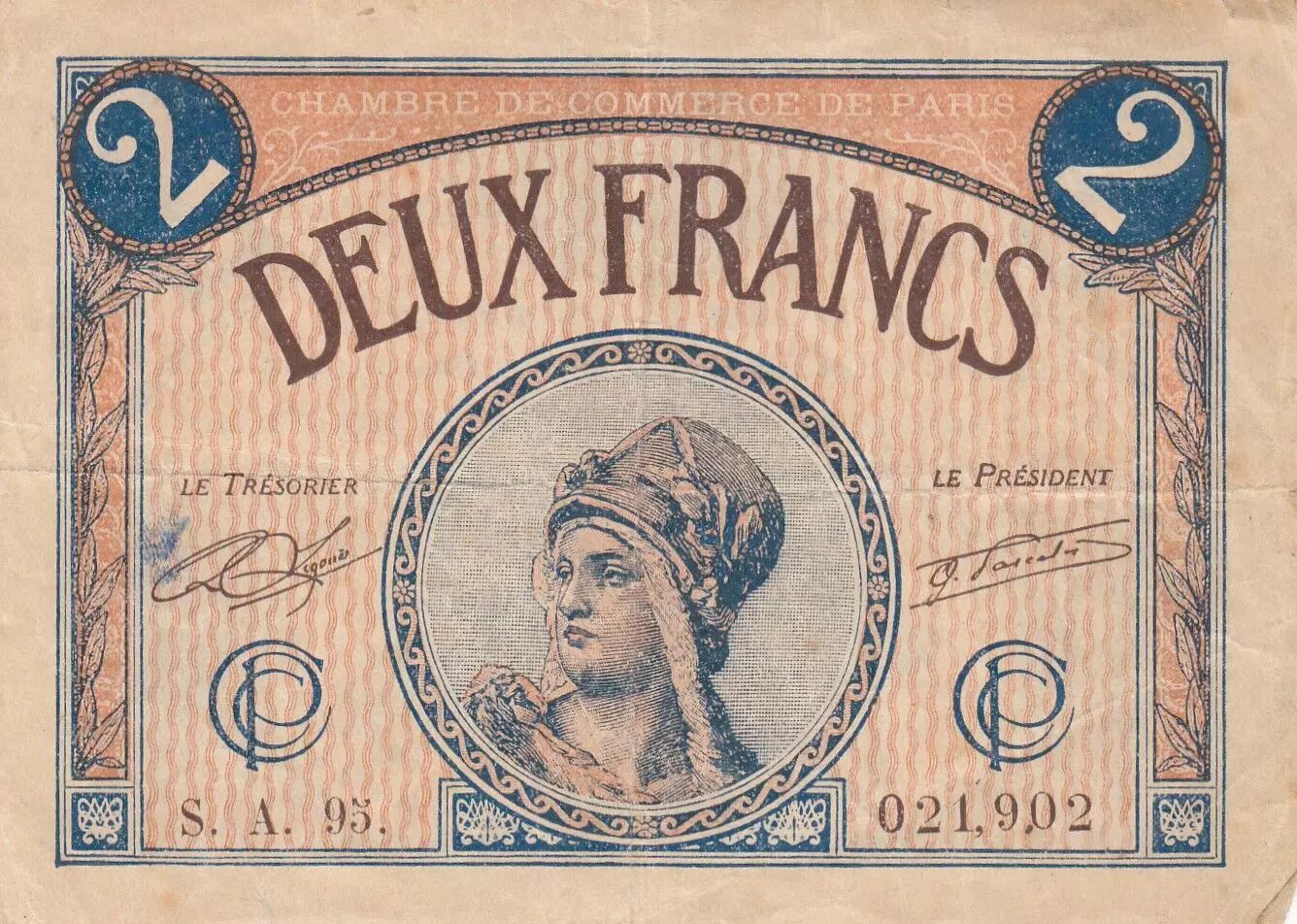 Accueil > Archivage > archivage-Billets Français > France 2 francs - Chambre de commerce de Paris - 1920 - Série S.A.95