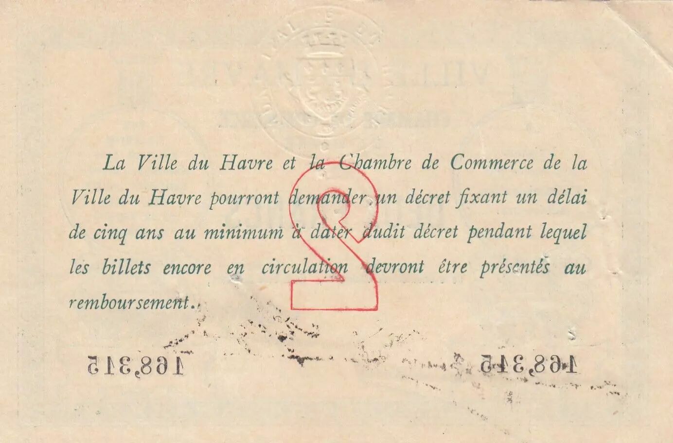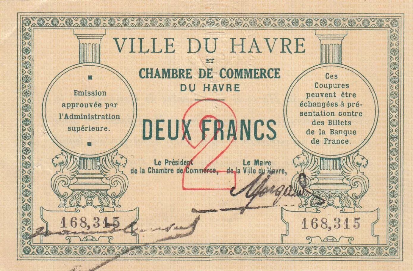 Billet France 2 Francs - Chambre de commerce du Havre - 1914 - Numéro 168315