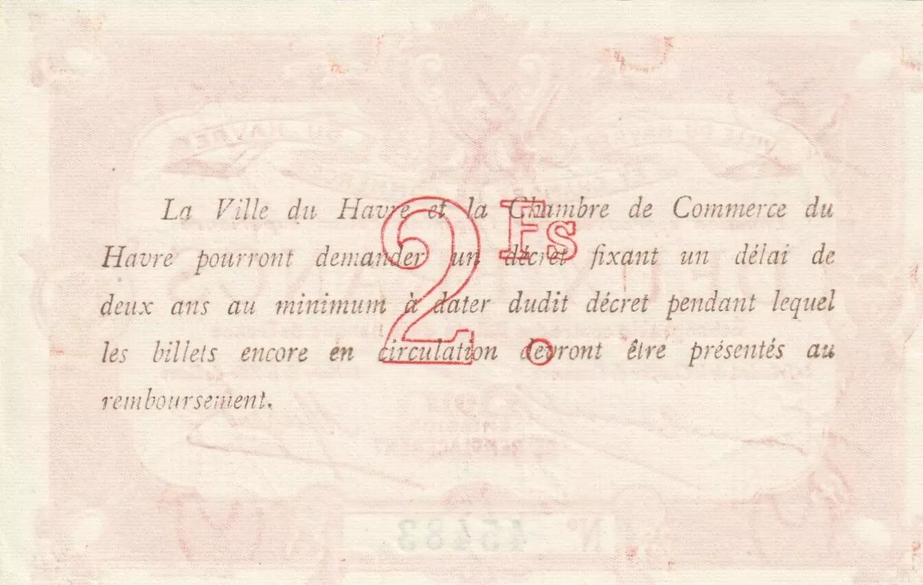 Billet France 2 Francs - Chambre de commerce du Havre - 1917 - Emission de remplacement