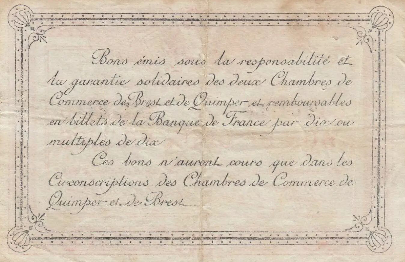 Accueil > Billets Français > Billets de Nécessités (1789-1945) > Bons de villes et de communes 1914-1925 > France 2 Francs - Chambre de Commerce - Quimper et Brest- 1922 - Série G