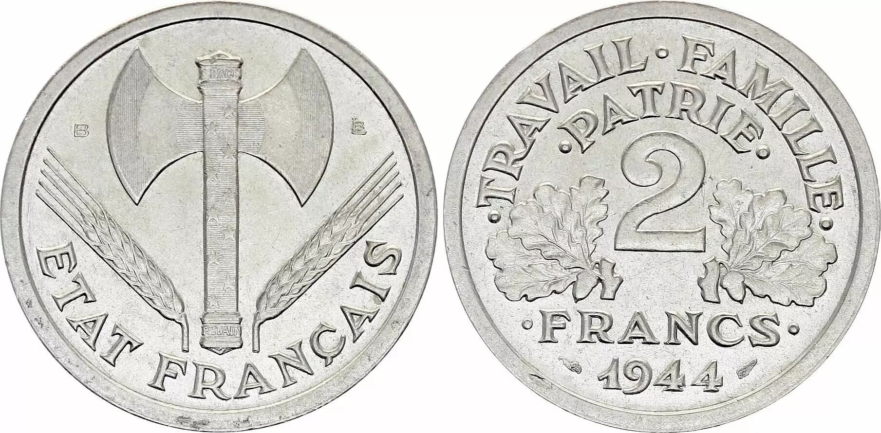 Pièce France 2 Francs Etat Francais - 1944 B SPL