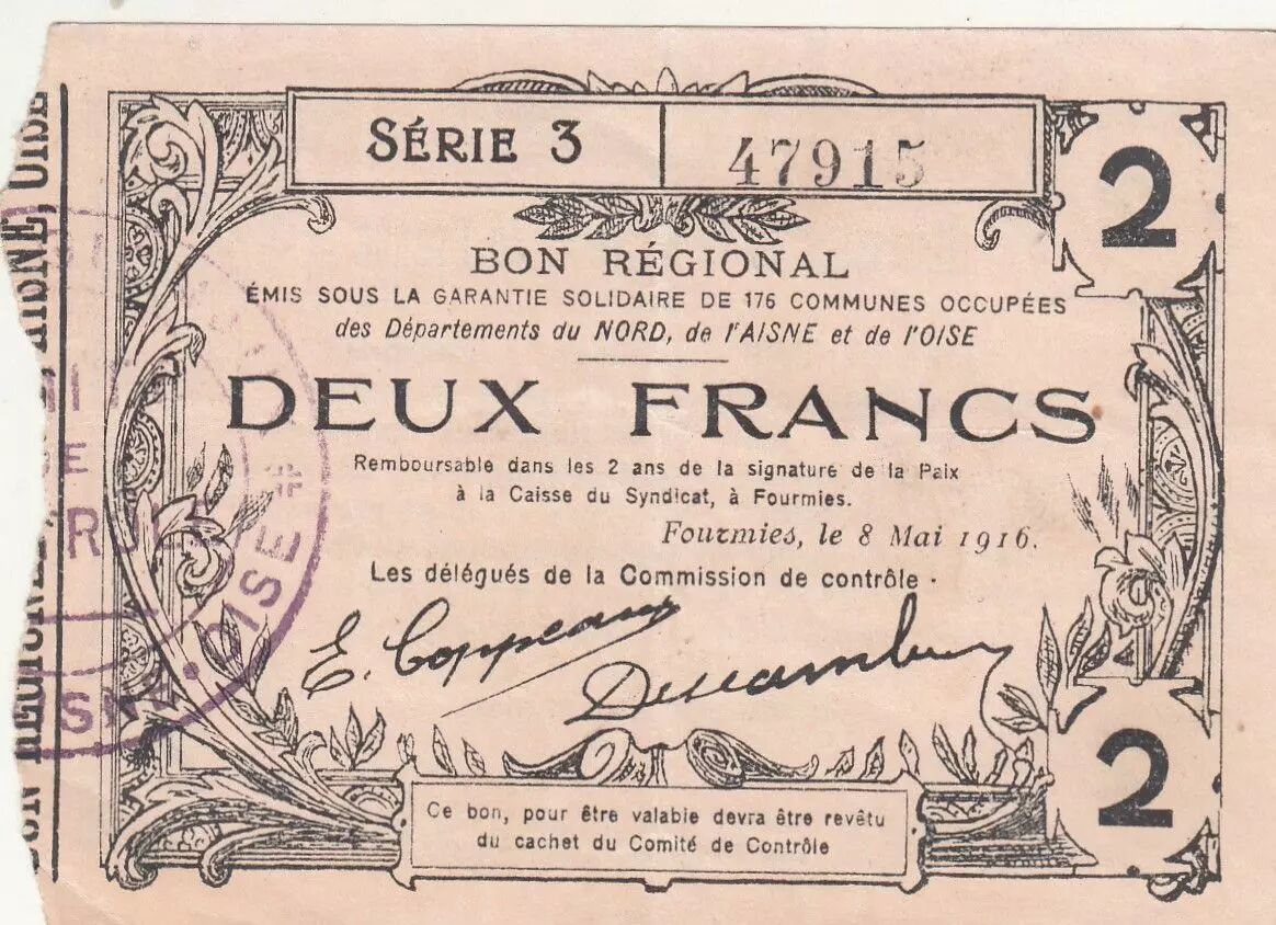 Billet France 2 Francs - Fourmies - Bon Régional - 08-05-1916 - Série 3