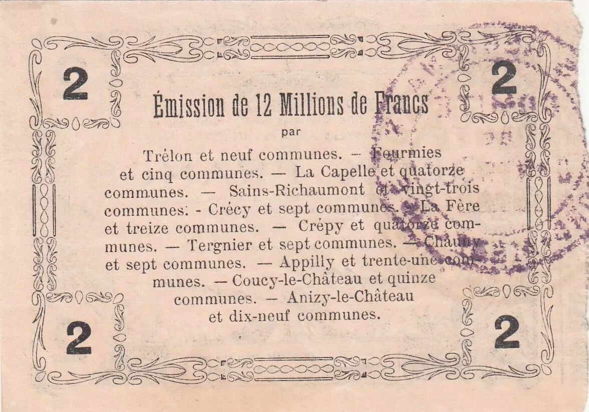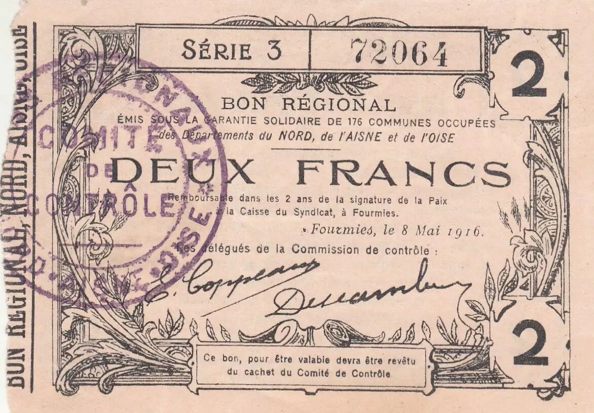 Banknote France 2 Francs - Fourmies - Regional Coupon - 08-05-1916 - Serial 3