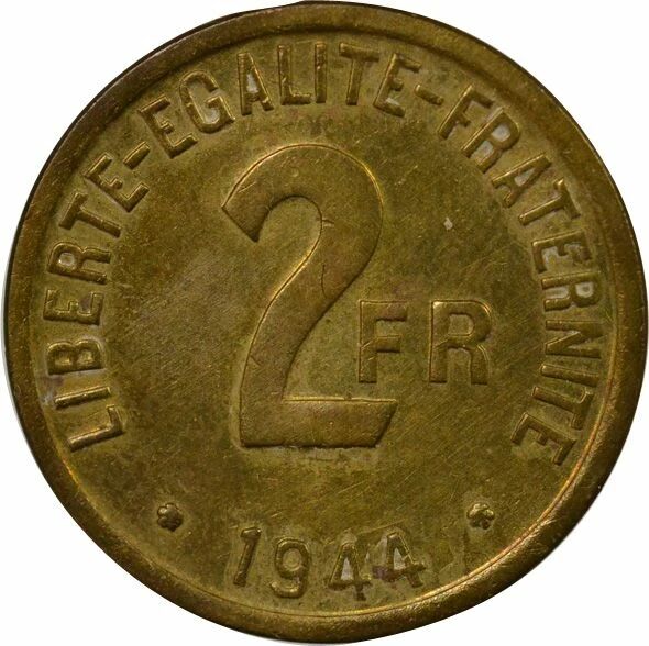 Pièce France 2 Francs, France Libre - 1944 Philadelphie