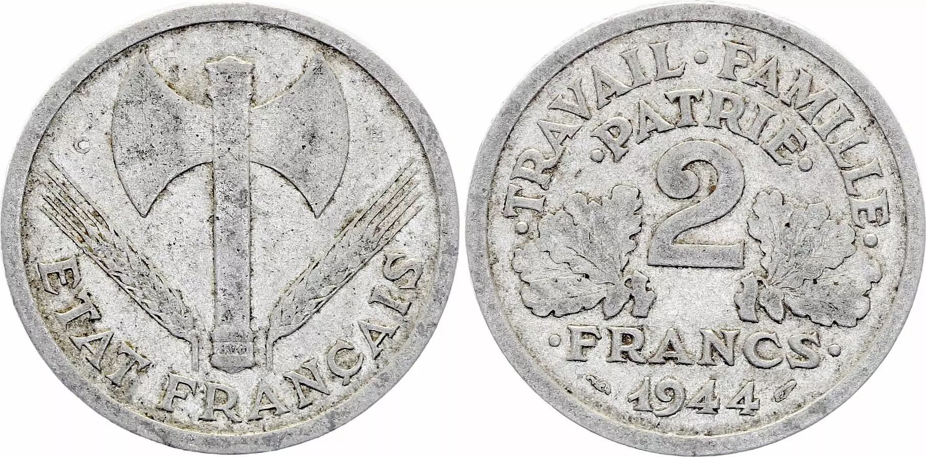Home > French coins (470 à 2002) > Modern Currencies (1789 to 2002) > 2 Francs > France 2 Francs - French state - 1944 - C Castesarrasin