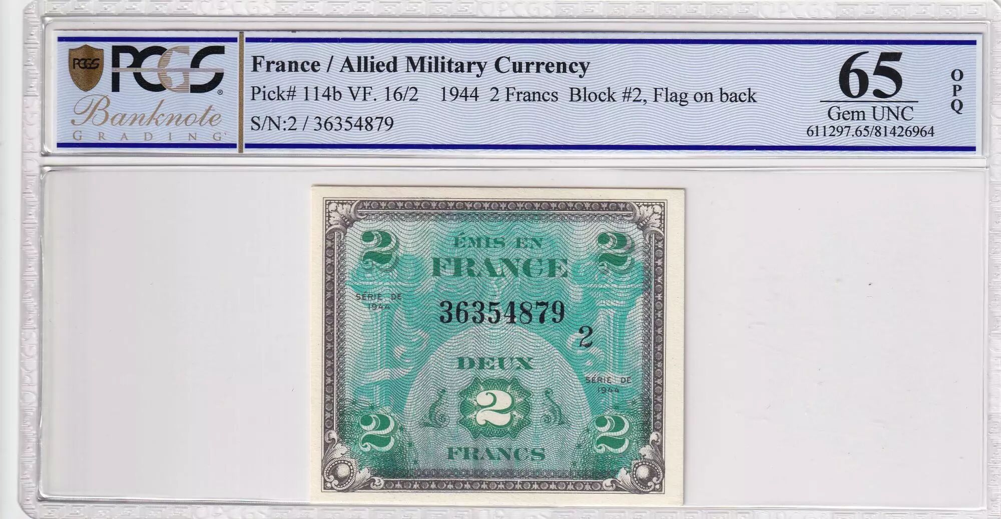Gradé 65 OPQ par PCGS