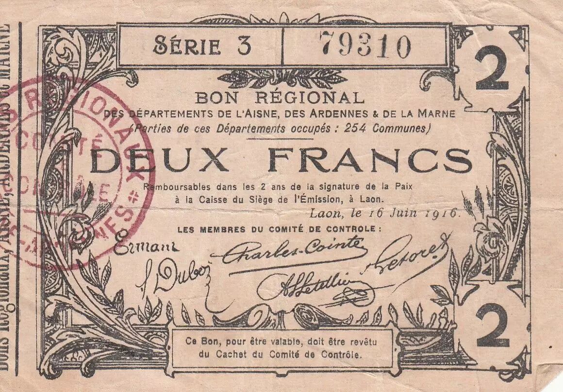 Accueil > Archivage > archivage-Billets Français > France 2 Francs - Laon - Bon Régional - 16-06-1916 - Série 3