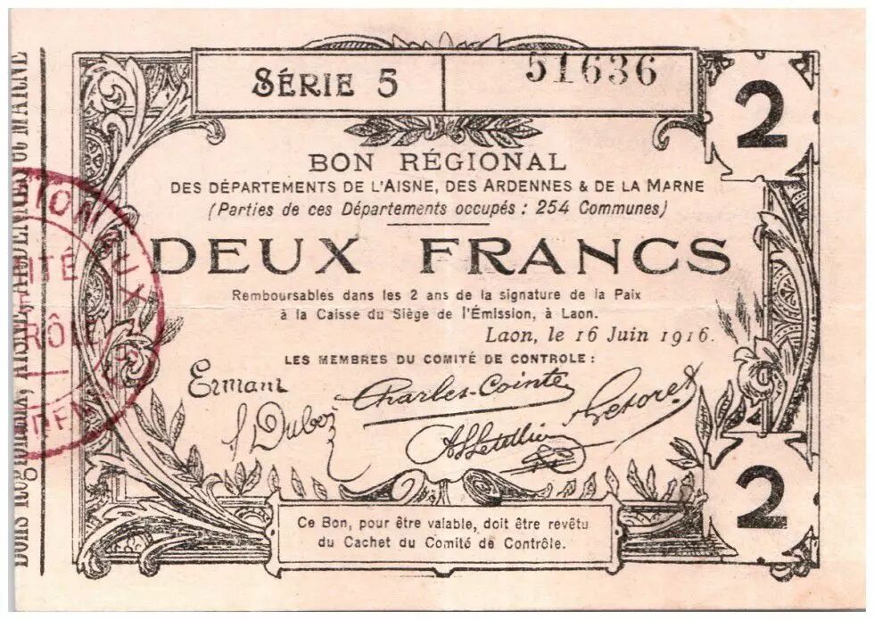 Banknote France 2 Francs Laon Régional - 1916