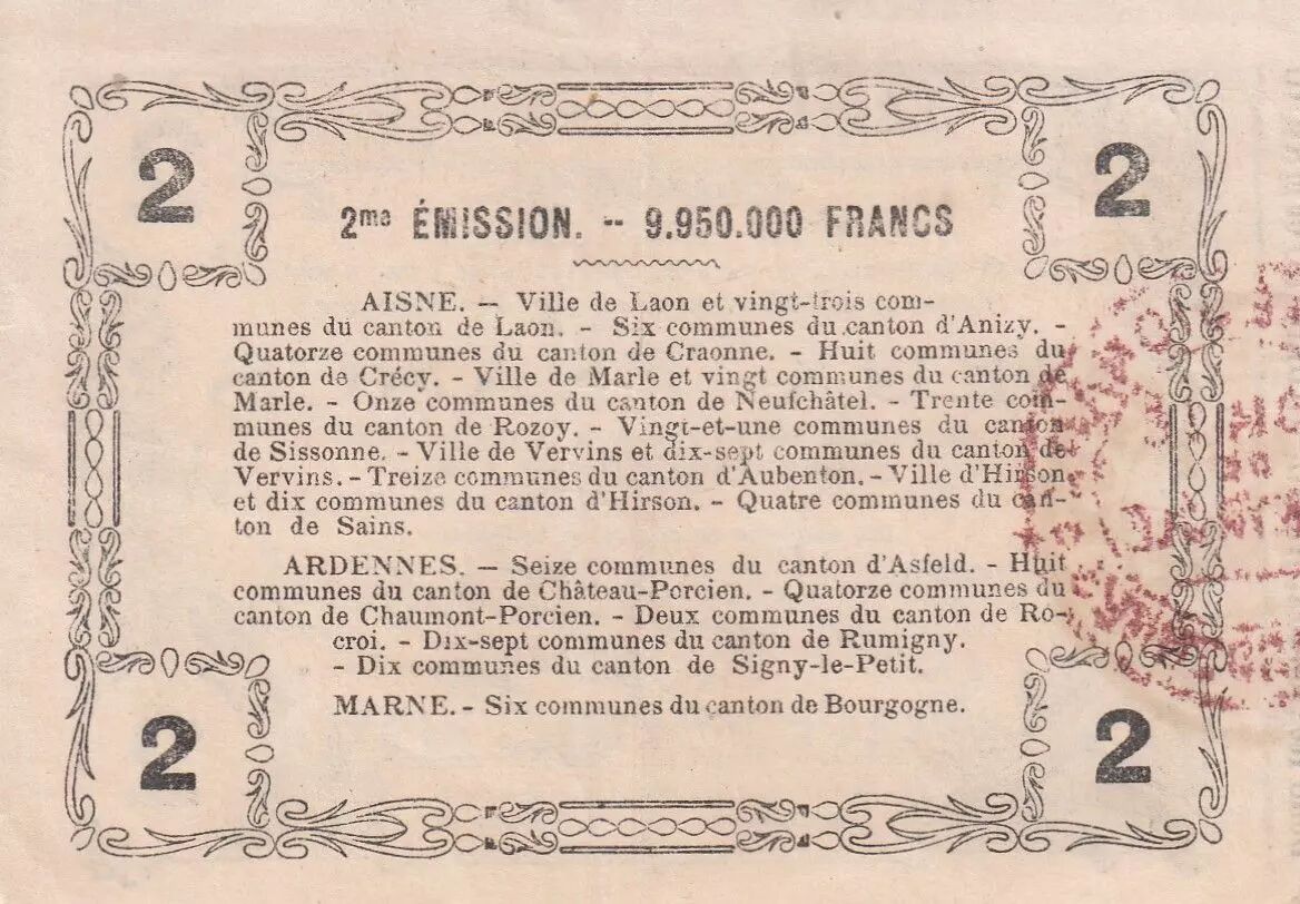 Banknote France 2 Francs - Laon - Regional Coupon - 16-06-1916 - Serial 1