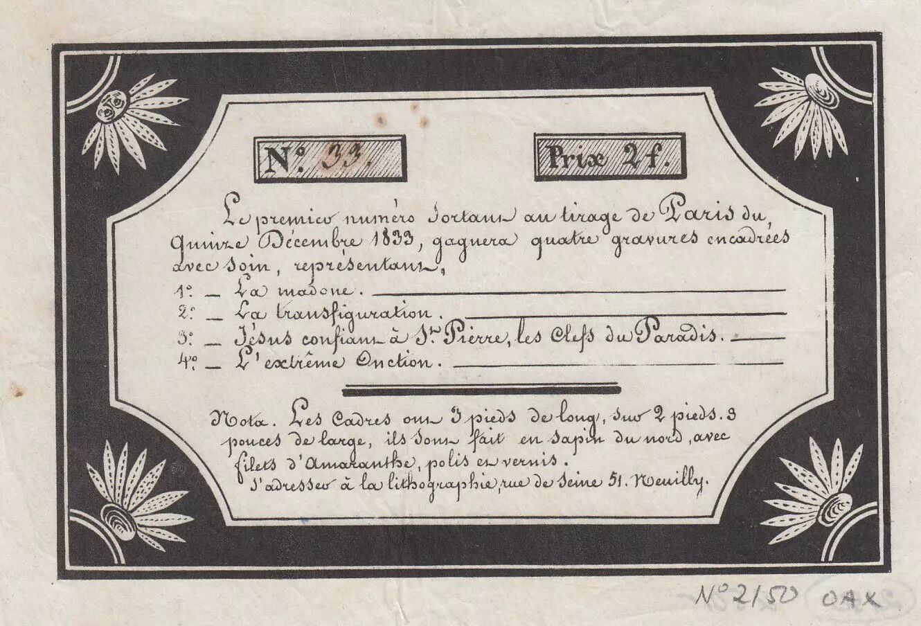 Banknote France 2 Francs Loterie Privée de Paris - 1833 - VF