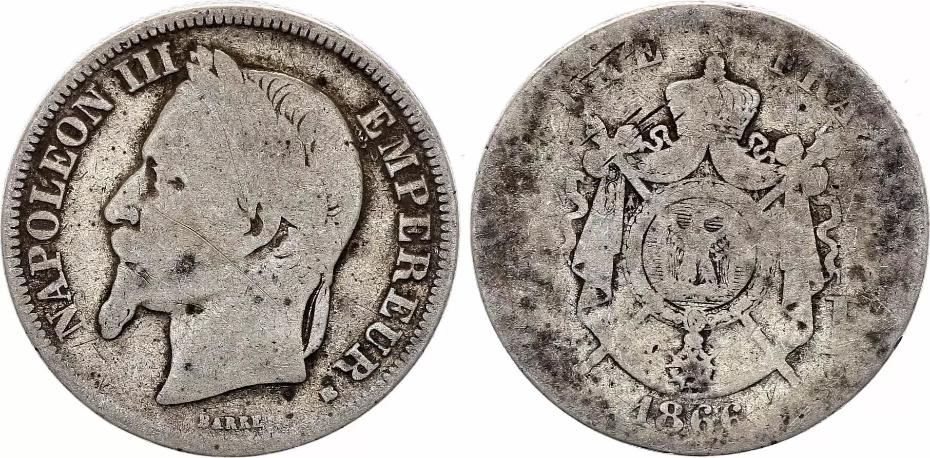 Pièce France 2 Francs Napoléon III - 1866 BB Strasbourg