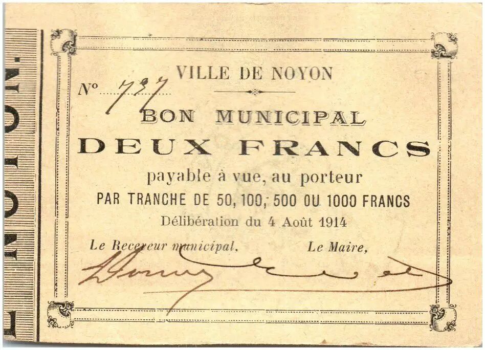 Billet France 2 Francs Noyon Ville - 1914
