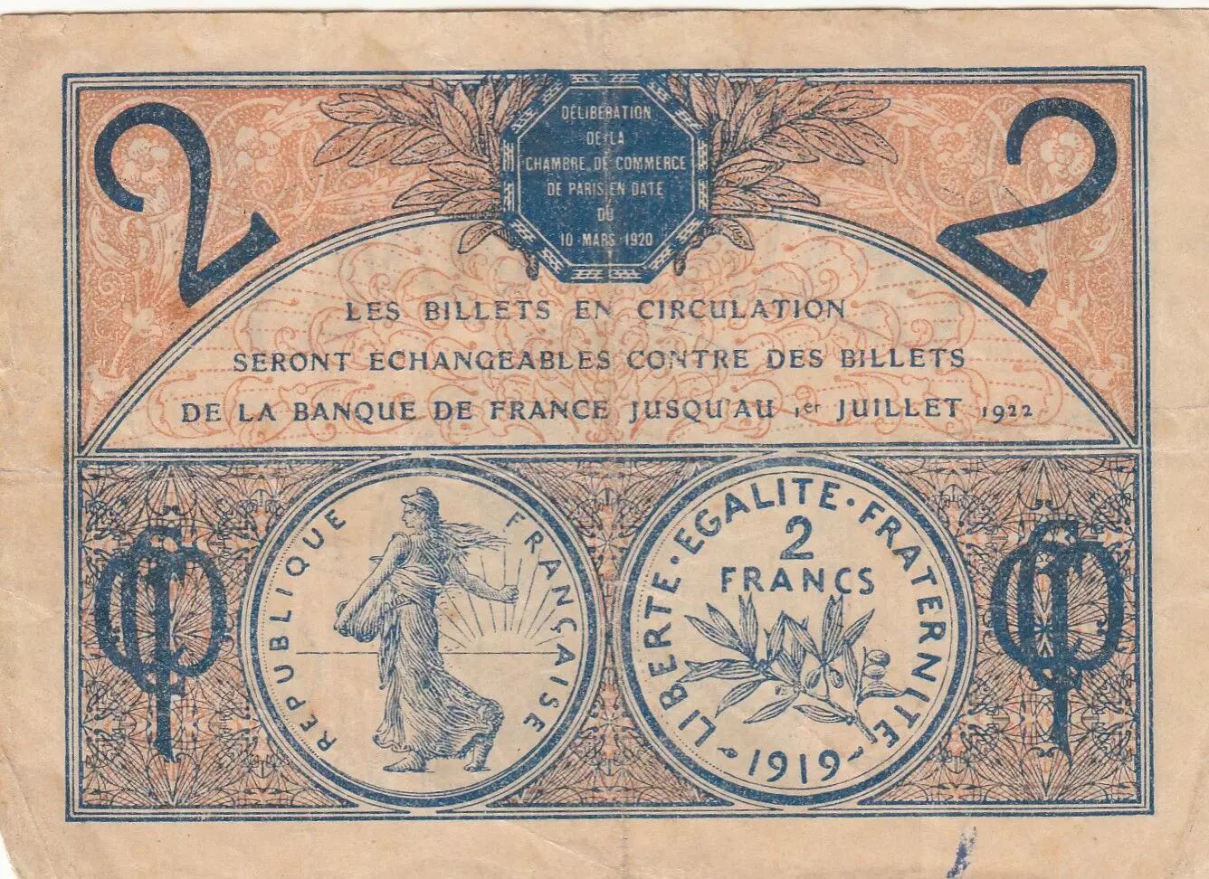 Home > > France 2 Francs - Paris Chamber of Commerce - 1920 - Serial S.A.95