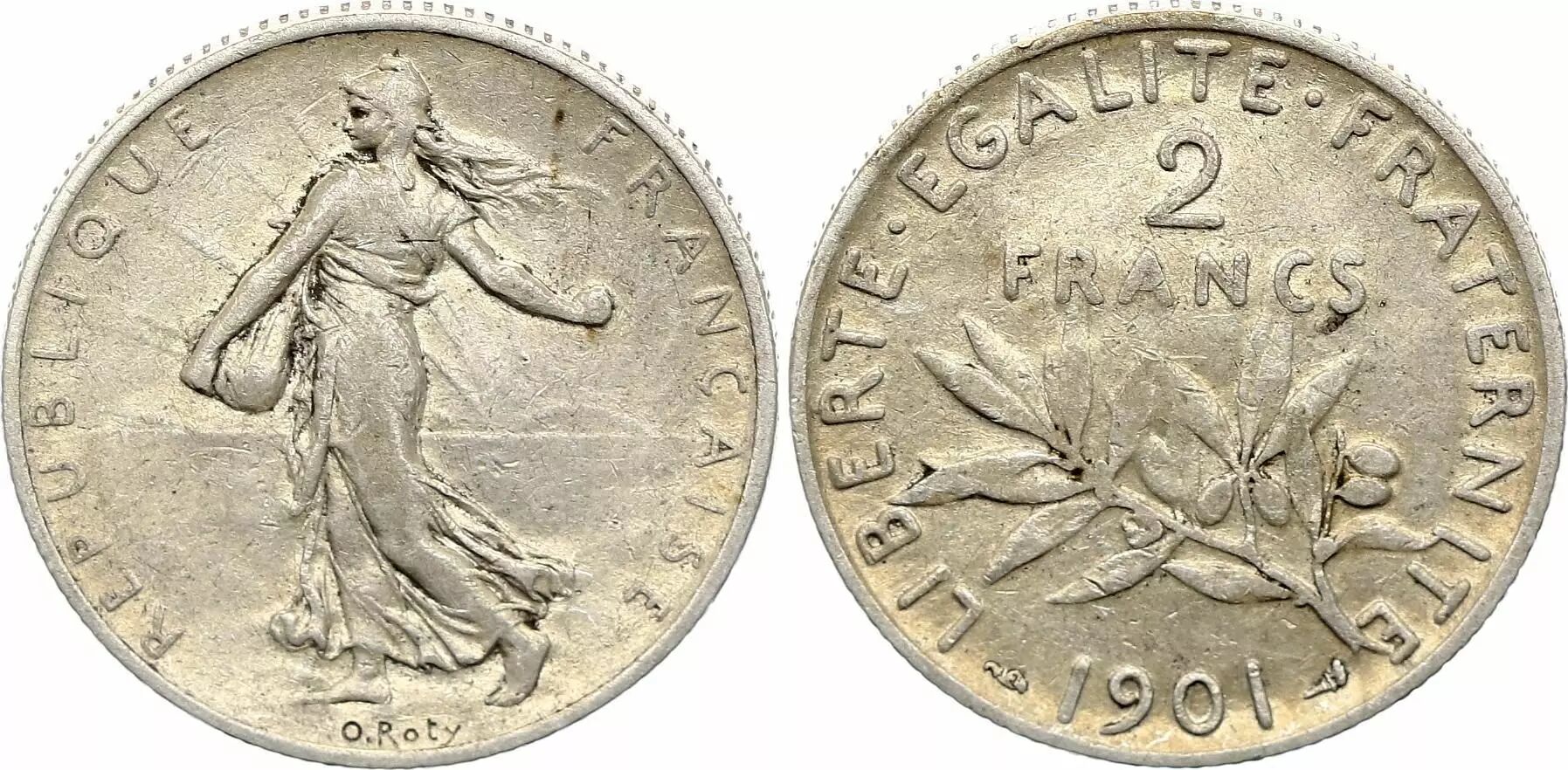 Pièce France 2 Francs Semeuse - 1901 - Argent