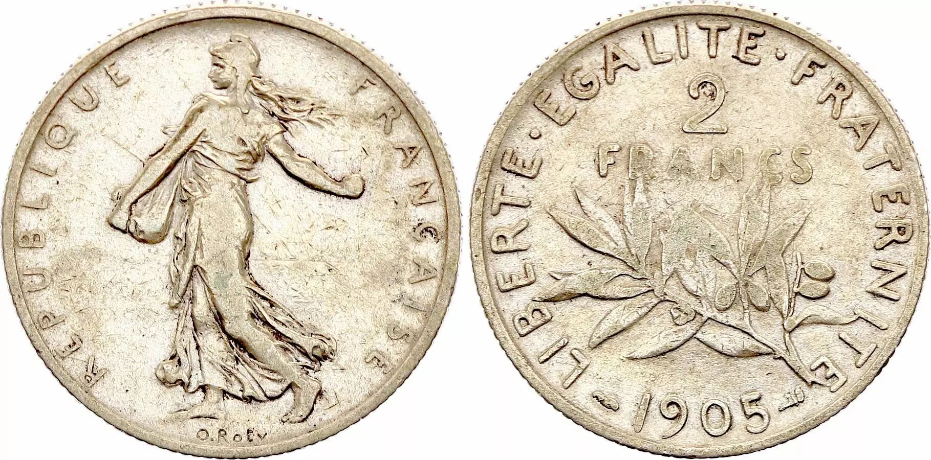 Coin France 2 Francs Semeuse - 1905 - Silver