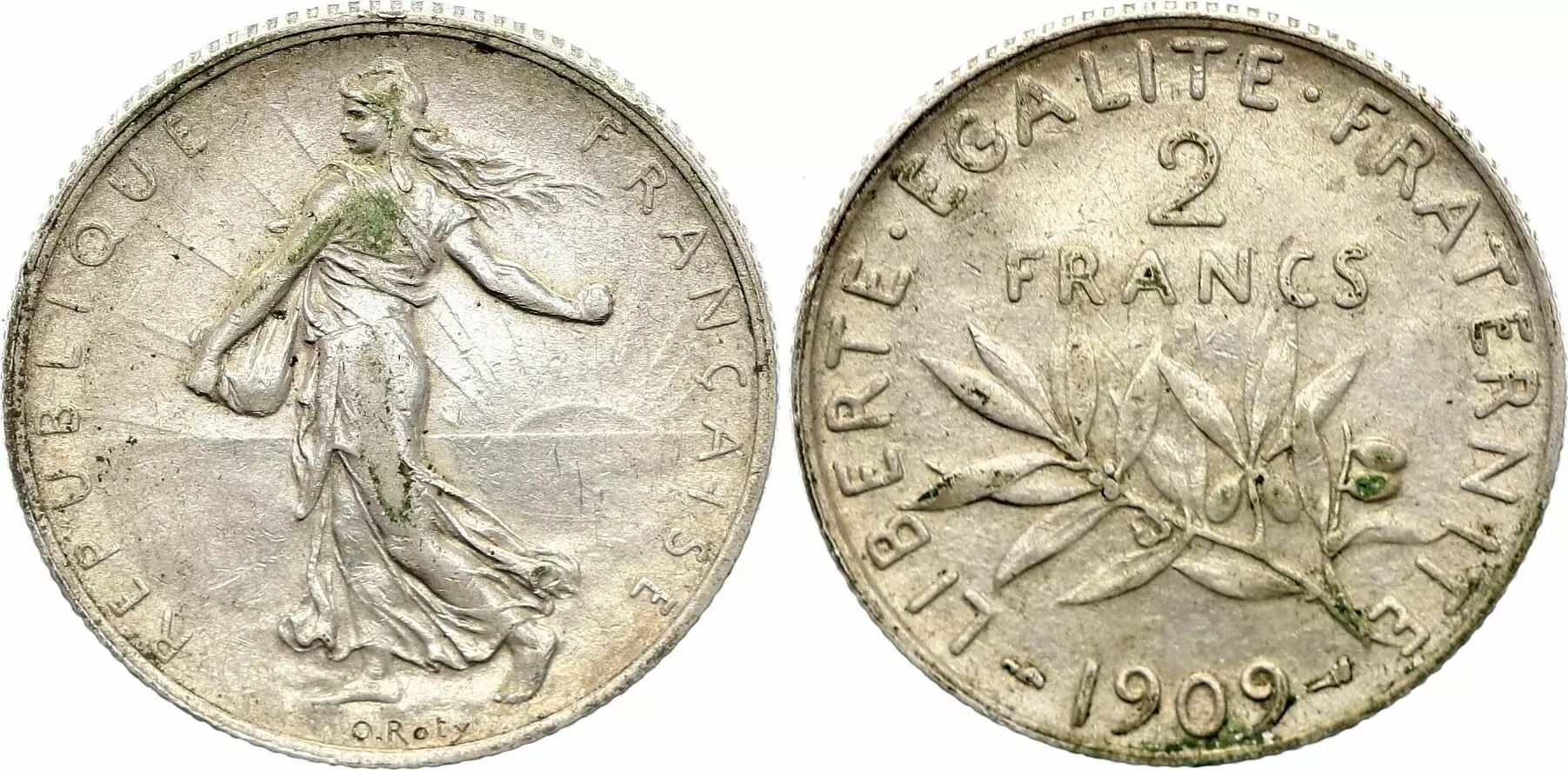 Coin France 2 Francs Semeuse - 1909 - Silver