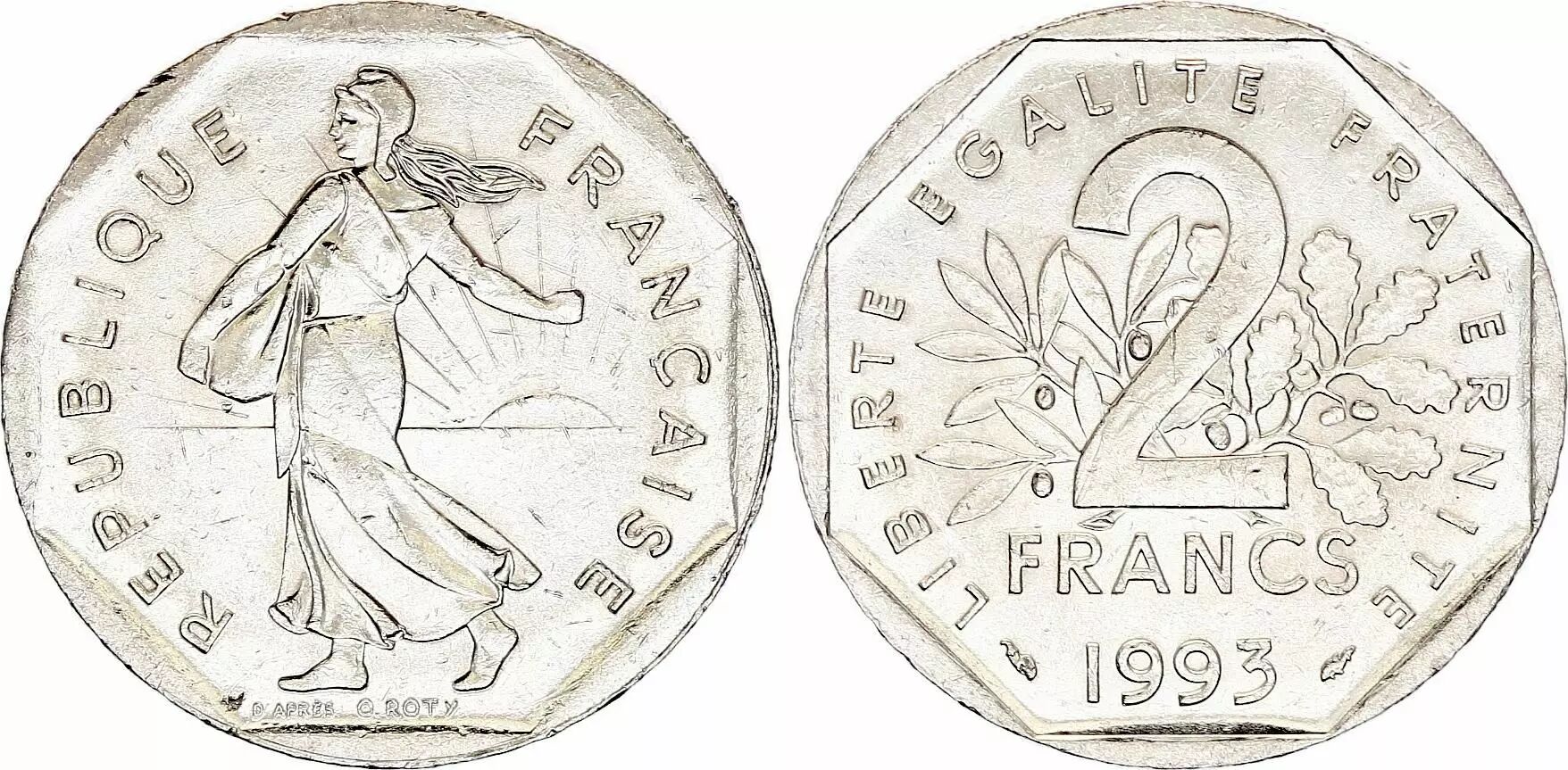 Les pièces de 2 francs "Semeuse" ont été frappées pour la première fois en 1979 et ont continué à être produites jusqu'en 2001. Elles ont été utilisées couramment jusqu'à l'introduction de l'euro en 2002. Comme pour la pièce de 1 franc, la "Semeuse" sur la pièce de 2 francs symbolise la République française et ses valeurs.