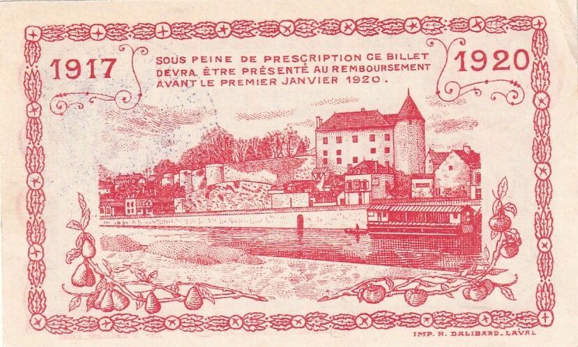Ce billet de nécessité français a été émis par la commune de Mayenne, située dans le département du même nom (numéro 53), le 8 décembre 1917. Il s'inscrit dans la période des émissions de nécessité des Communes et Villes durant la Première Guerre mondiale, entre 1914 et 1918.