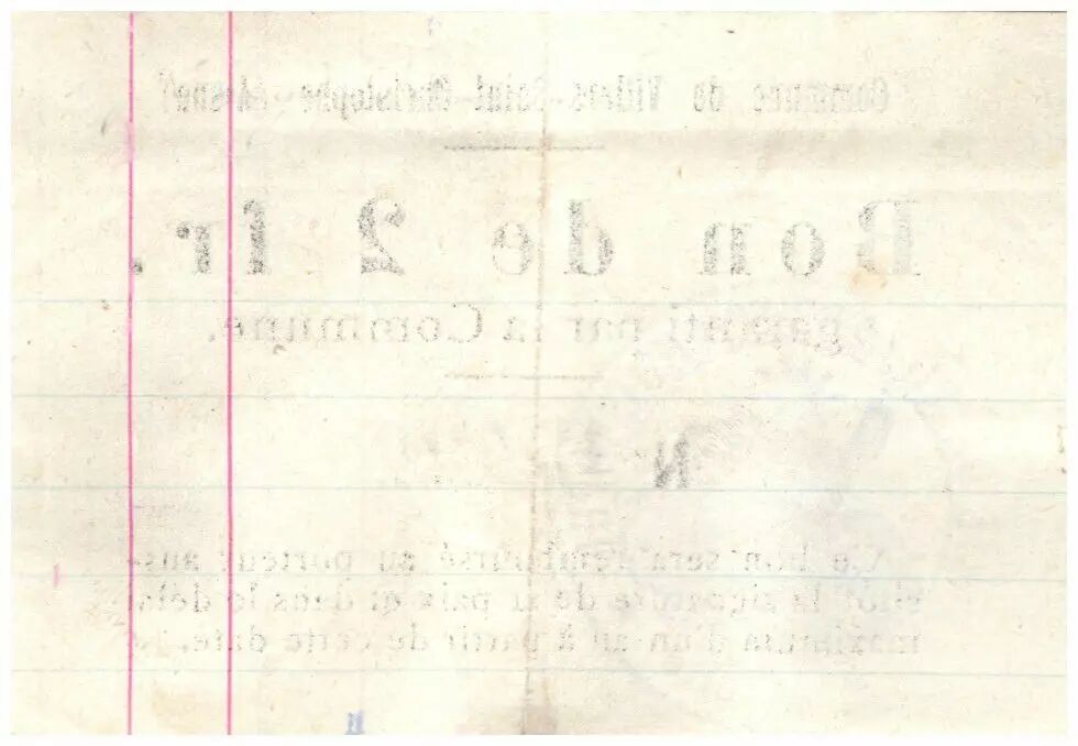Billet France 2 Francs Villers-Saint-Christophe Commune - 1915