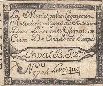 Billet France 2 livres - Mayenne - Municipalité de Laval - ND