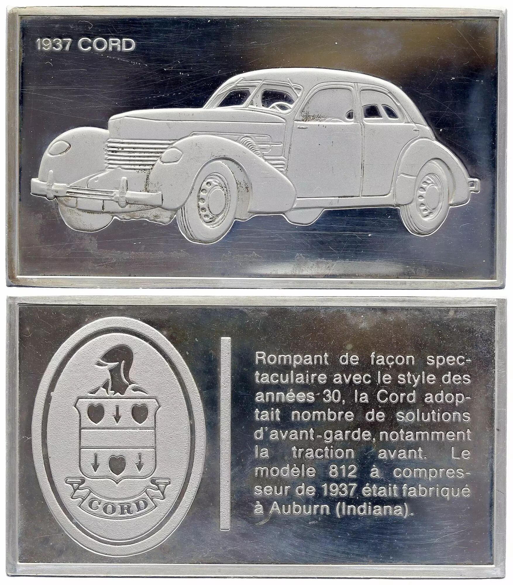 Home > > France 2 Oz Silver Bar - Medaillier Franklin - Cord 812 (1937) - Silver - 1982 - XF to AU