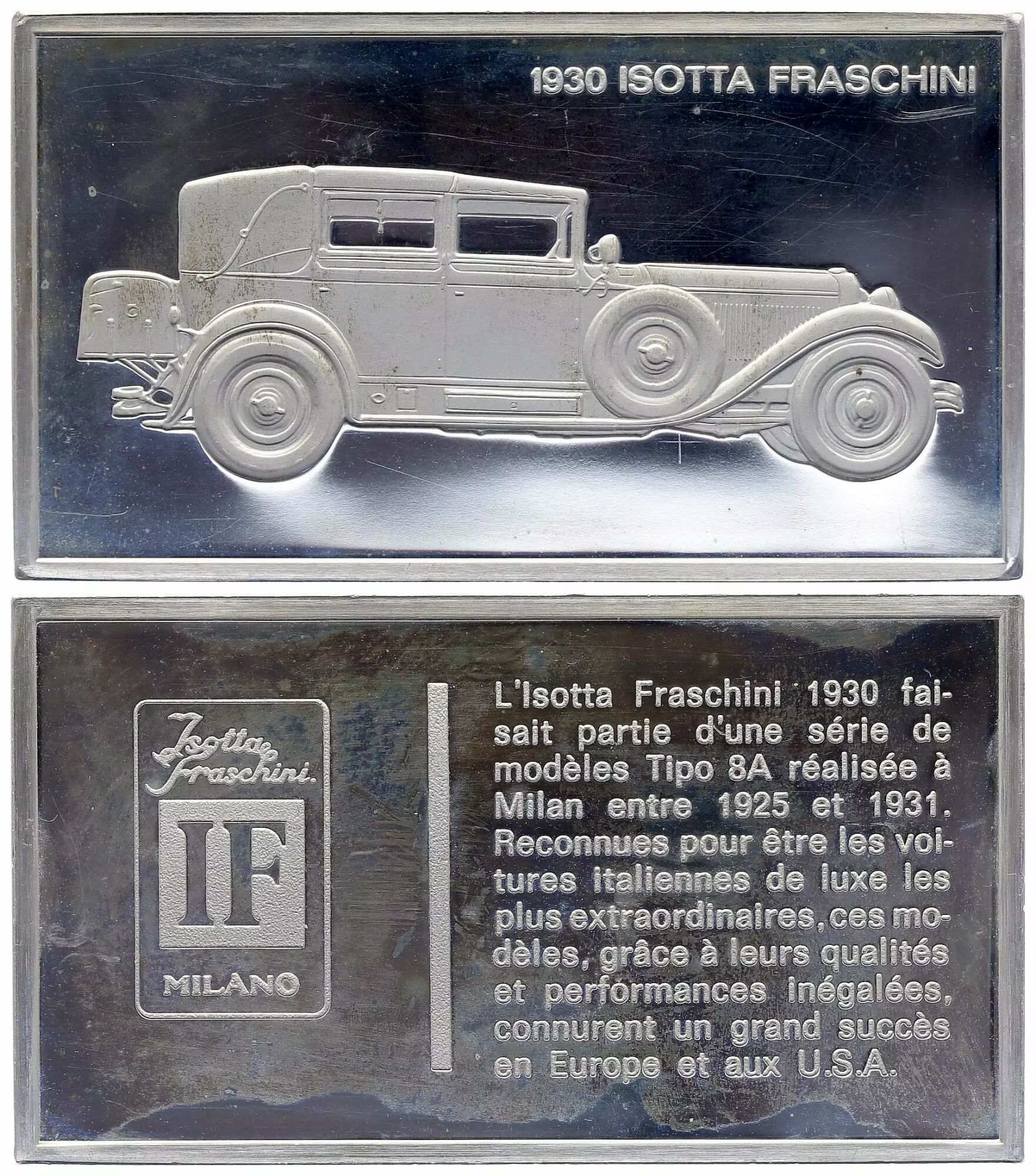 Home > > France 2 Oz Silver Bar - Medaillier Franklin - Isotta Fraschini (1930) - Silver - 1982 - XF to AU