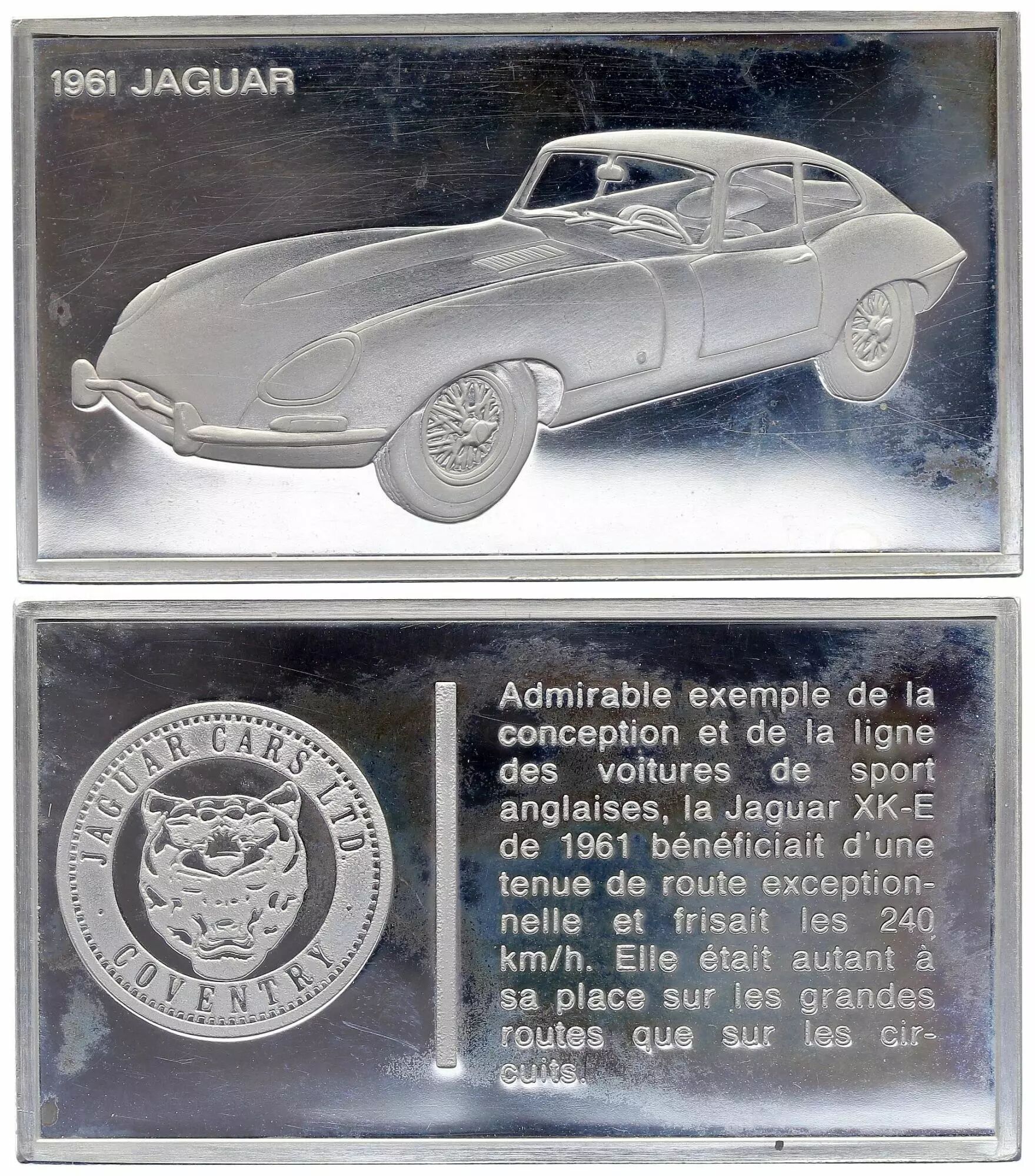 Home > > France 2 Oz Silver Bar - Medaillier Franklin - Jaguar XK-E (1961) - Silver - 1982 - XF to AU