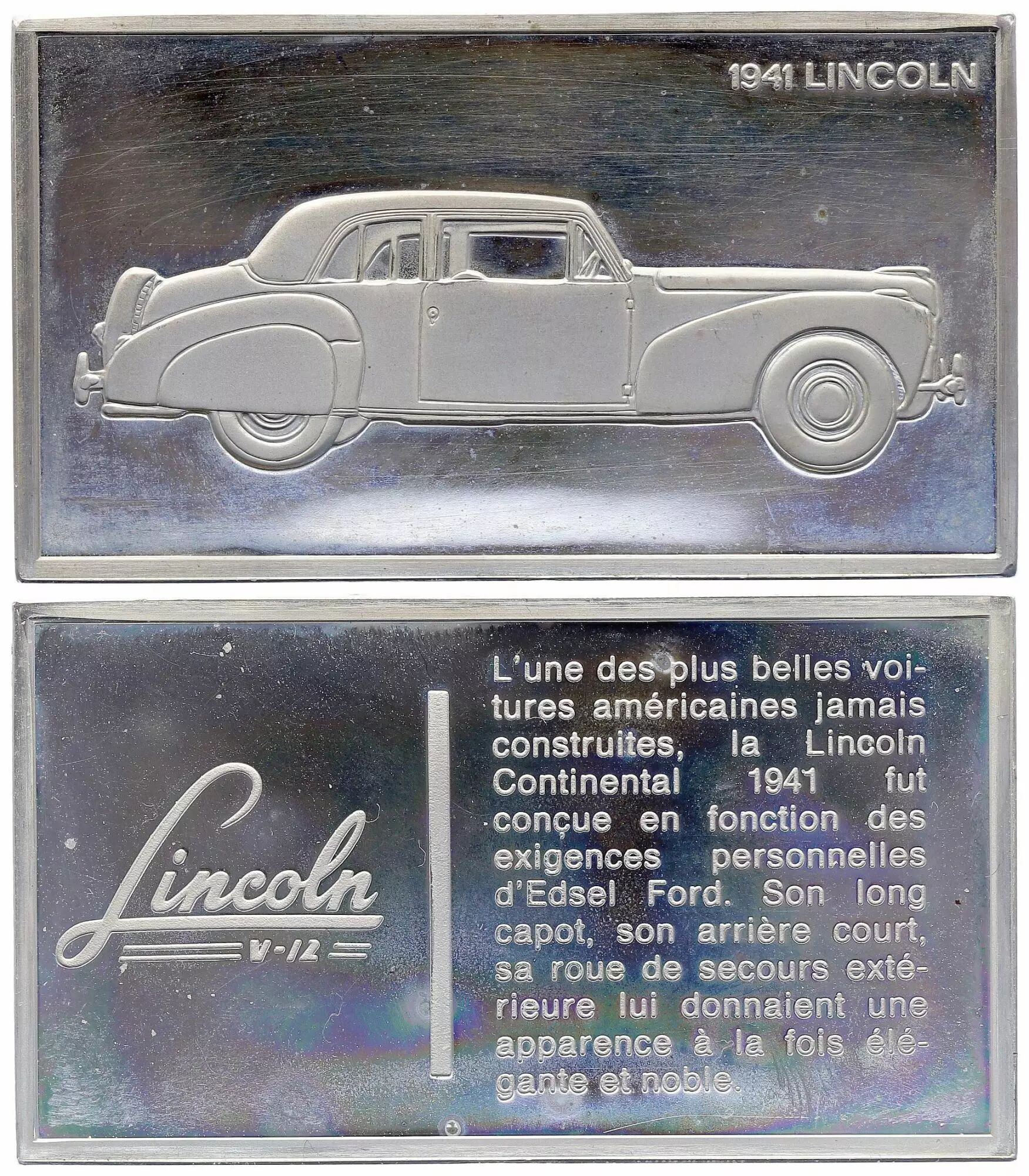 Home > > France 2 Oz Silver Bar - Medaillier Franklin - Lincoln continental (1941) - Silver - 1982 - XF to AU